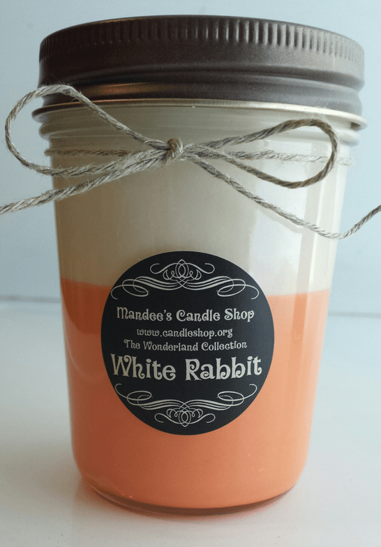 The White Rabbit Candle is an 8 ounce, hand-poured, 100% economically friendly soy wax candle. This particular candle is colored orange and white to reflect the essence of The White Rabbit. The deliciously crafted scent of carrot cake can be enjoyed as this candle burns for hours and has an excellent scent throw.